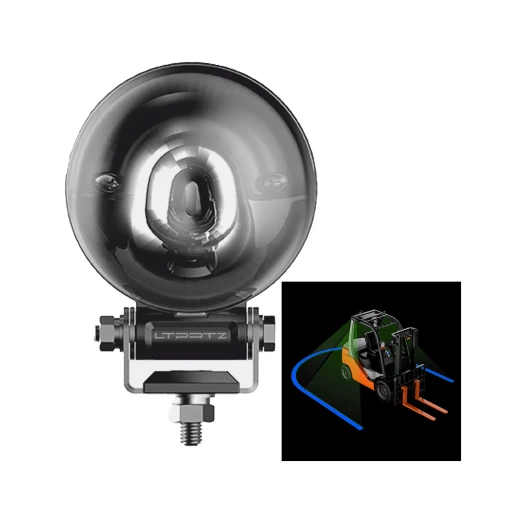 Проецируя круглую кривую на заднюю часть погрузчика, он надежно предупреждает пешеходов и другие транспортные средства о приближающемся погрузчике.